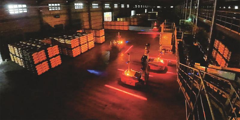 图为AGV无人叉车在心连心集团“黑灯仓库”娴熟作业场面